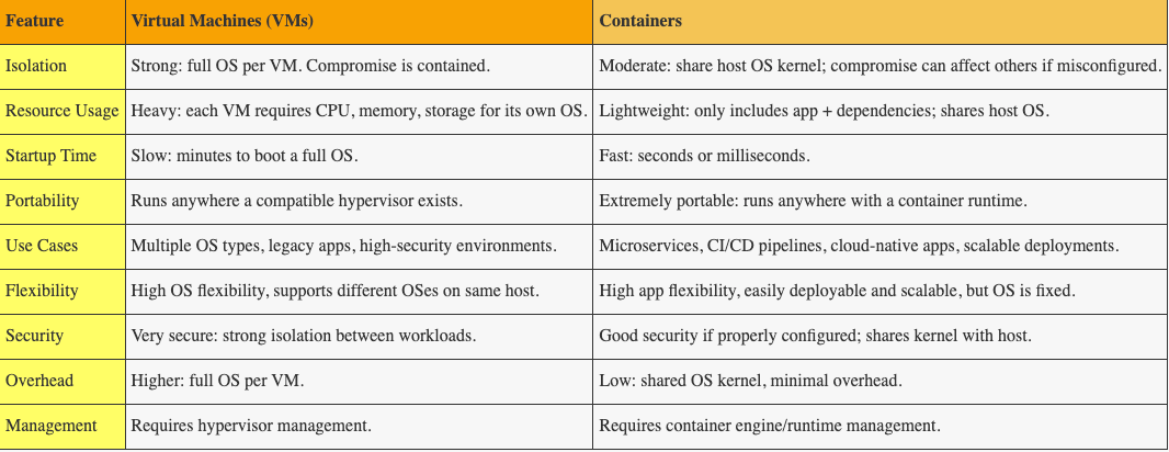 Containers = Speed & Efficiency: Ideal for modern cloud-native applications, microservices, and DevOps pipelines.