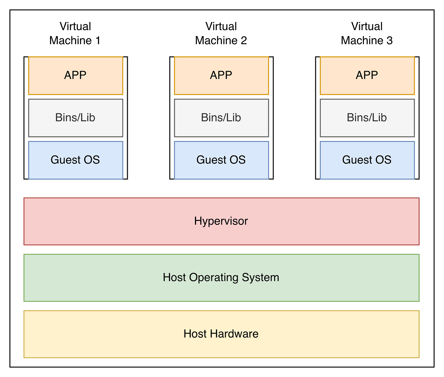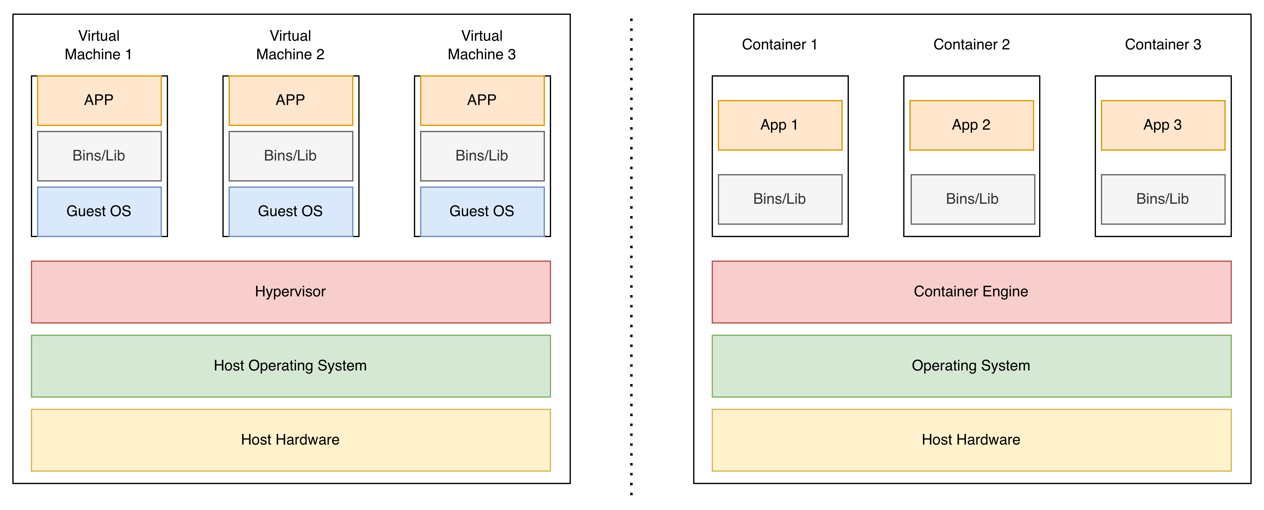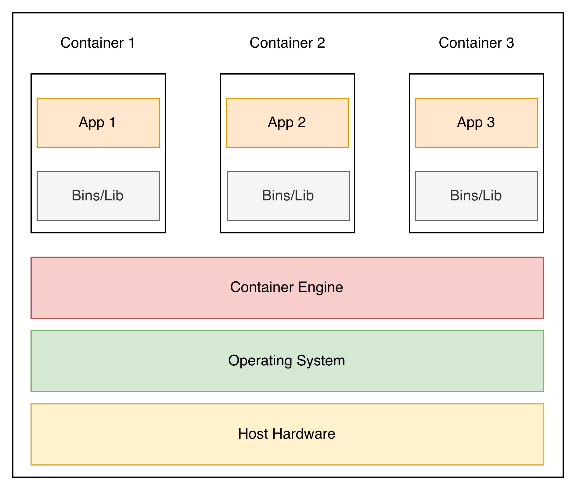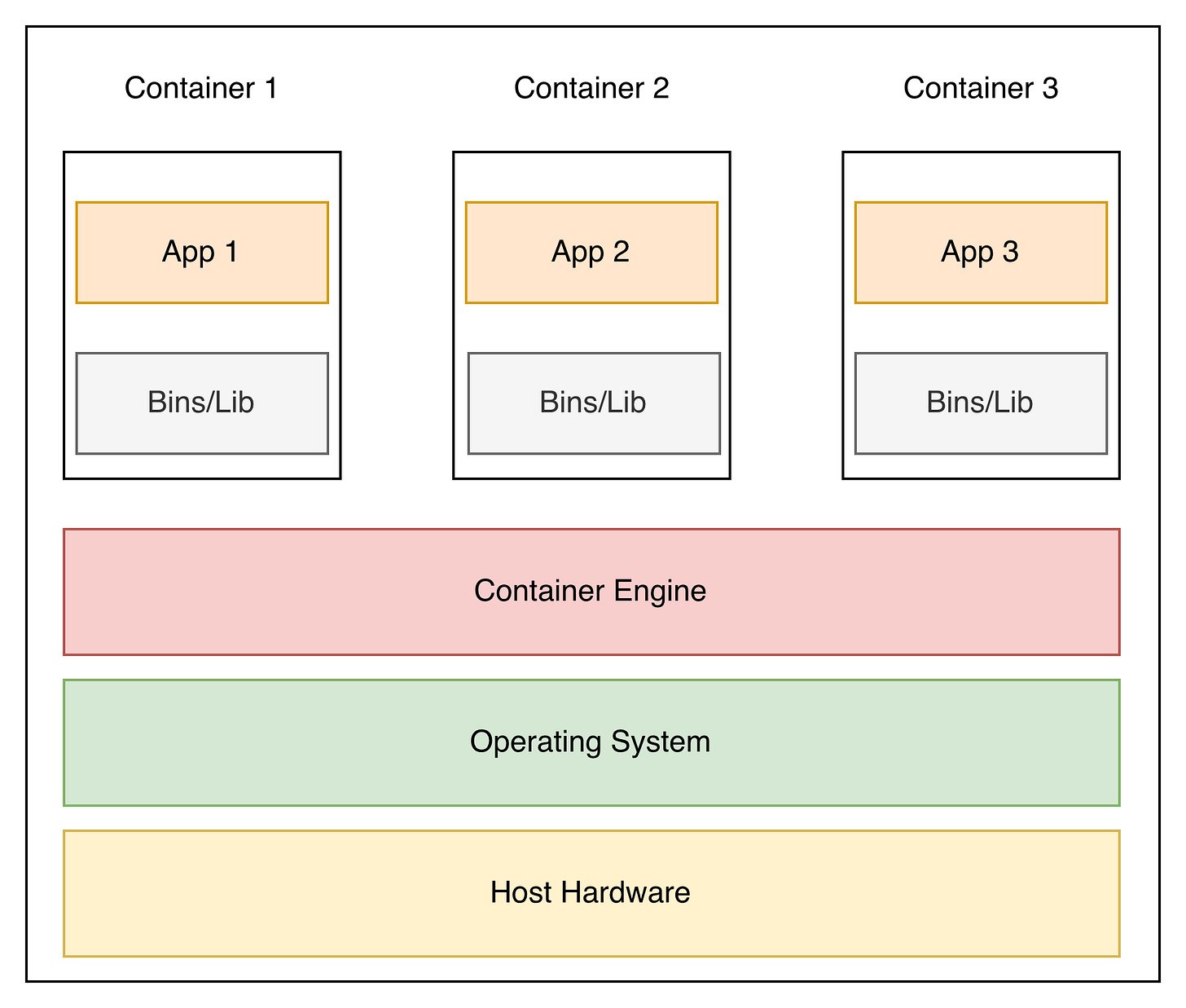 Host Hardware – the physical machine powering everything, just like with VMs.
