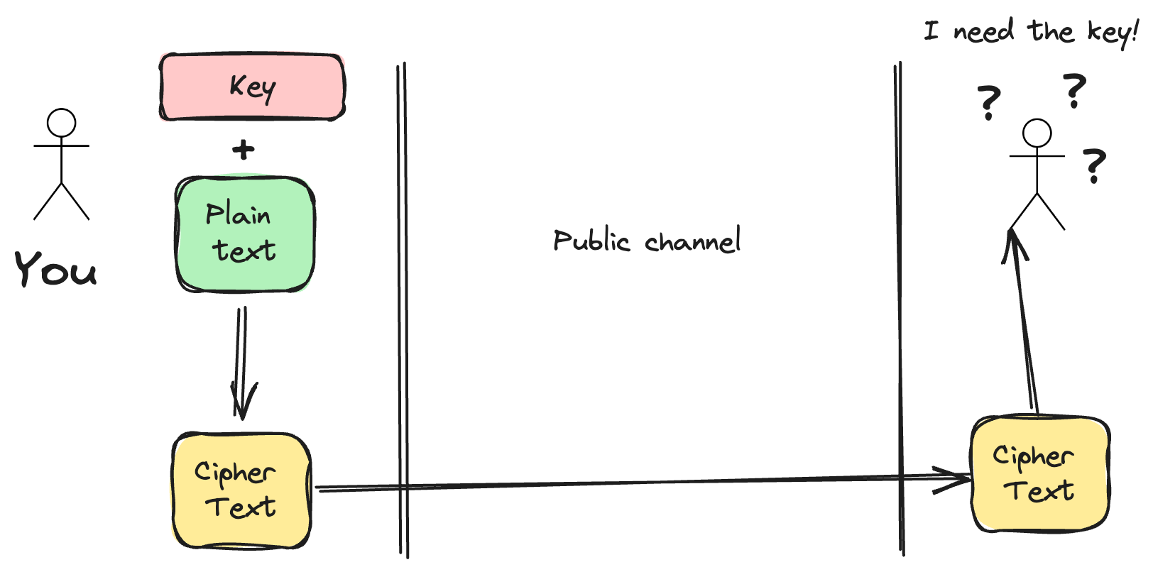 They need to decrypt the message somehow, and everyone can see your communication channel.