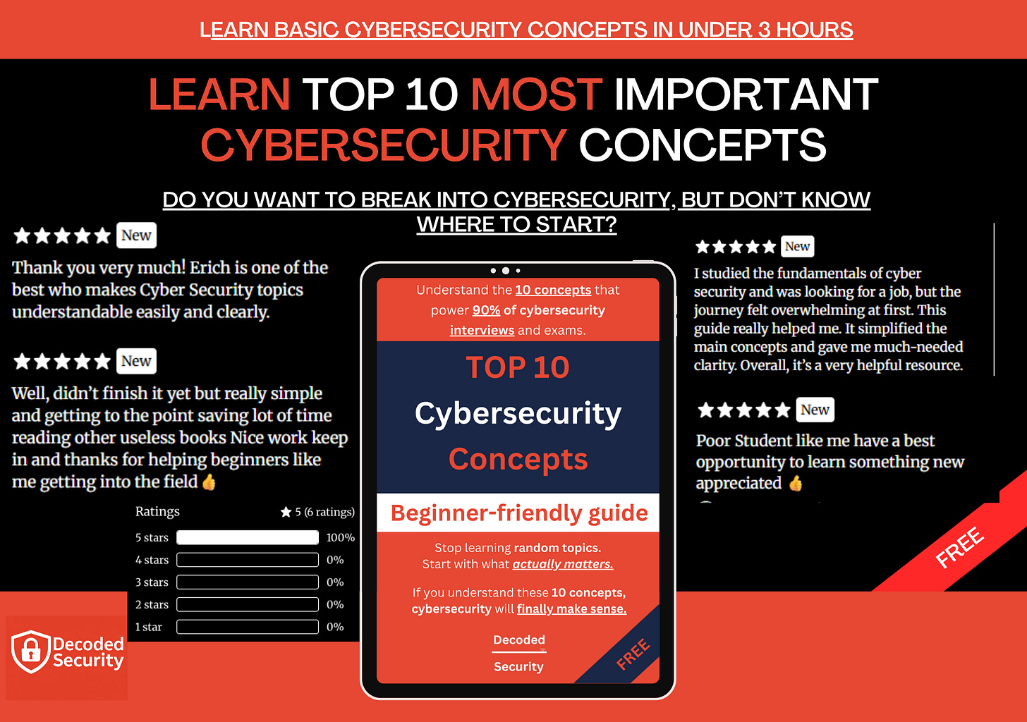 Download it here for FREE: Cybersecurity Fundamentals: The 10 Concepts That Get You Through 90% of Interviews