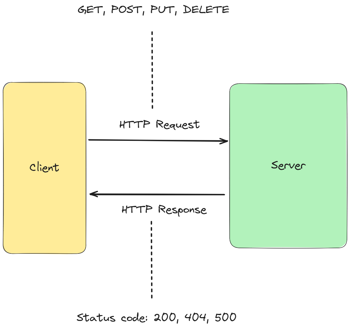 HTTP uses a request–response model. A client (browser) sends an HTTP request to a server, and the server responds with content (HTML, images, API data, etc.).