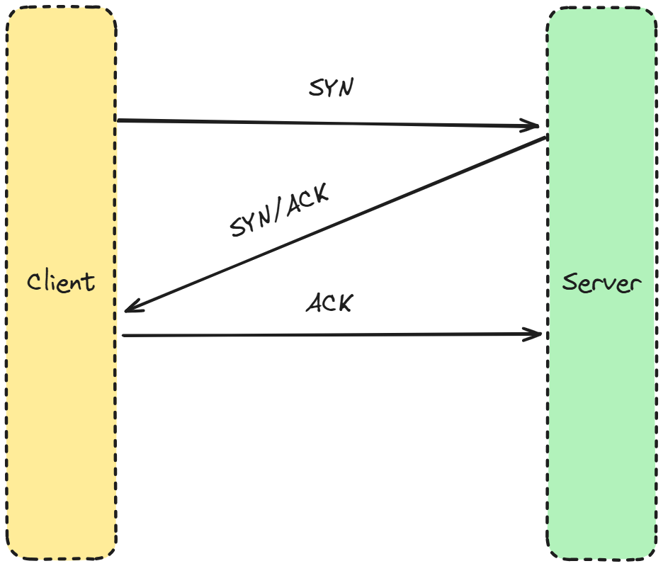 Before sending data, TCP establishes a connection between two devices using something called a three-way handshake: